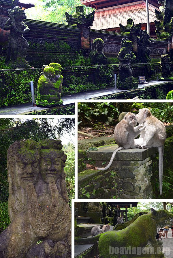 Logo na chegada os visitantes são convidados a adentrar uma nova dimensão – macacos estão livres por todos os lados, esculturas típicas do hinduismo, com animais endeusados e uma vegetação intensa e exuberante constituem o visual da Floresta dos Macacos. Os nativos em seus trajes típicos, as estátuas de diversos animais, inclusive um gigantesco macaco marcam as impressões de quem visita esse lugar pela primeira vez.