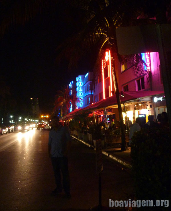 E como eu fiquei admirado pelas cores vivas e chocantes dos neôns dos prédios da Ocean Drive. Eu queria fotografar tudo, sem flash, para poder registrar a beleza desses contrastes de luzes com a arquitetura antiga dos prédios. Essa é a verdadeira Flórida.
