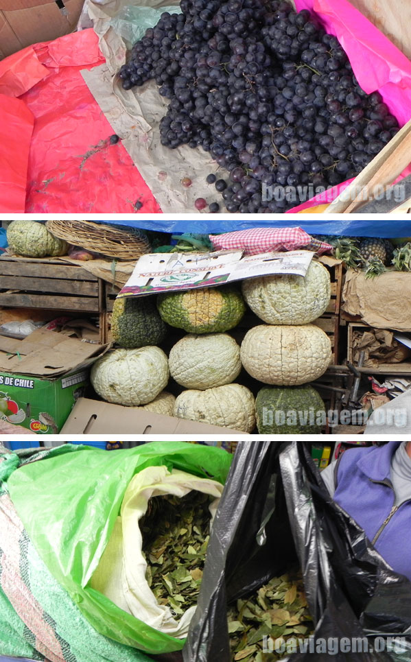 Comércio dos camponeses em Chivay – frutas, verduras, legumes e folha de coca